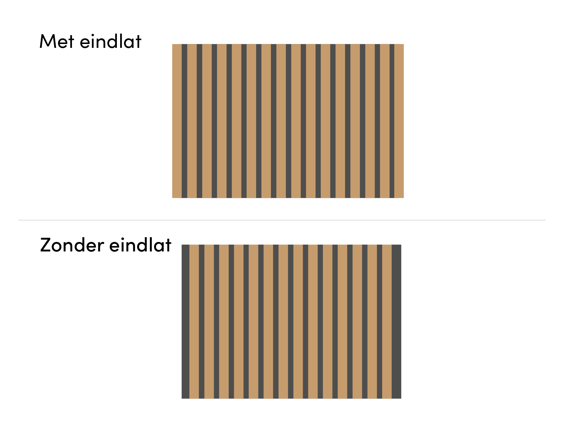 Het afwerken van je project met eindlatten zorgt voor een nette en professionele uitstraling. Eindlatten bedekken de randen van de panelen, waardoor de zijkant van het vilt niet meer te zien is en een naadloze overgang ontstaat tussen de wand en de panelen. Bovendien bieden ze extra bescherming tegen slijtage en schade, verlengen ze de levensduur van je panelen, en versterken ze het design van je interieur.